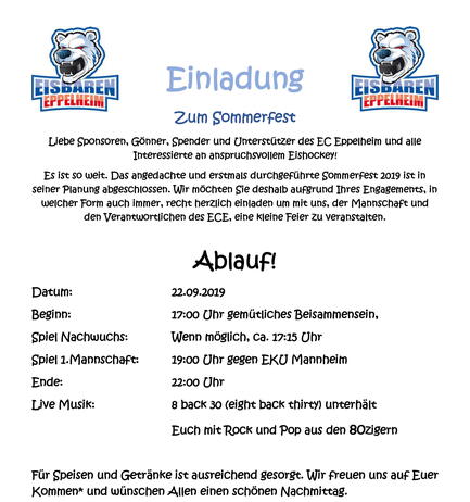 Hierzu wird die Band "8 back 30" einen rockigen Rahmen bilden, um sich bei Speis und Trank auf das bevorstehende Derby einzustimmen.